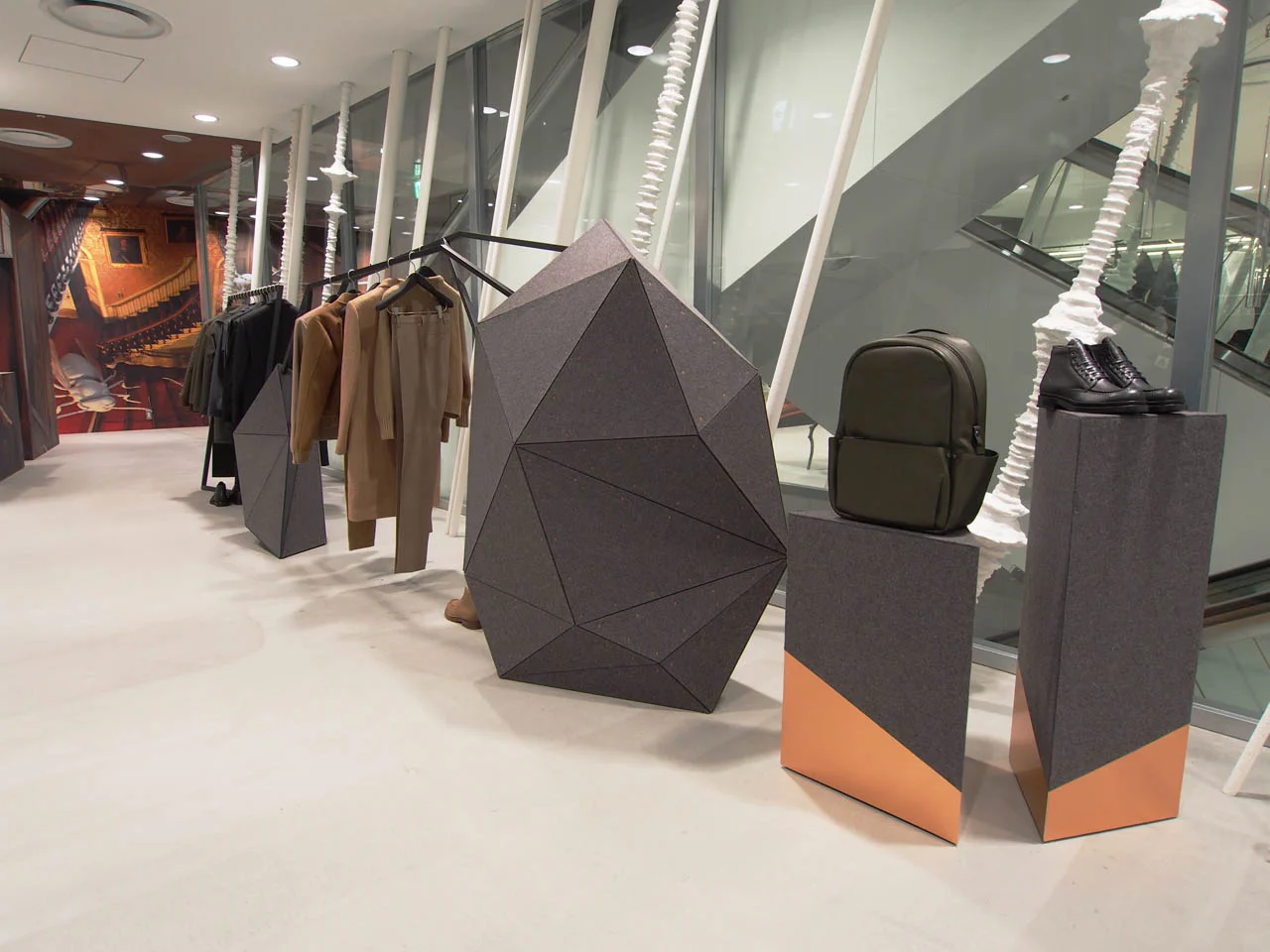 I designed sculptural shapes out of heavy felt riveted to a substructure along with steel hang rods and pedestals for displaying product. After the success of the Dover Street Market project, I was asked to provide a similar concept for the Calvin Klein’s flagship store in New York.